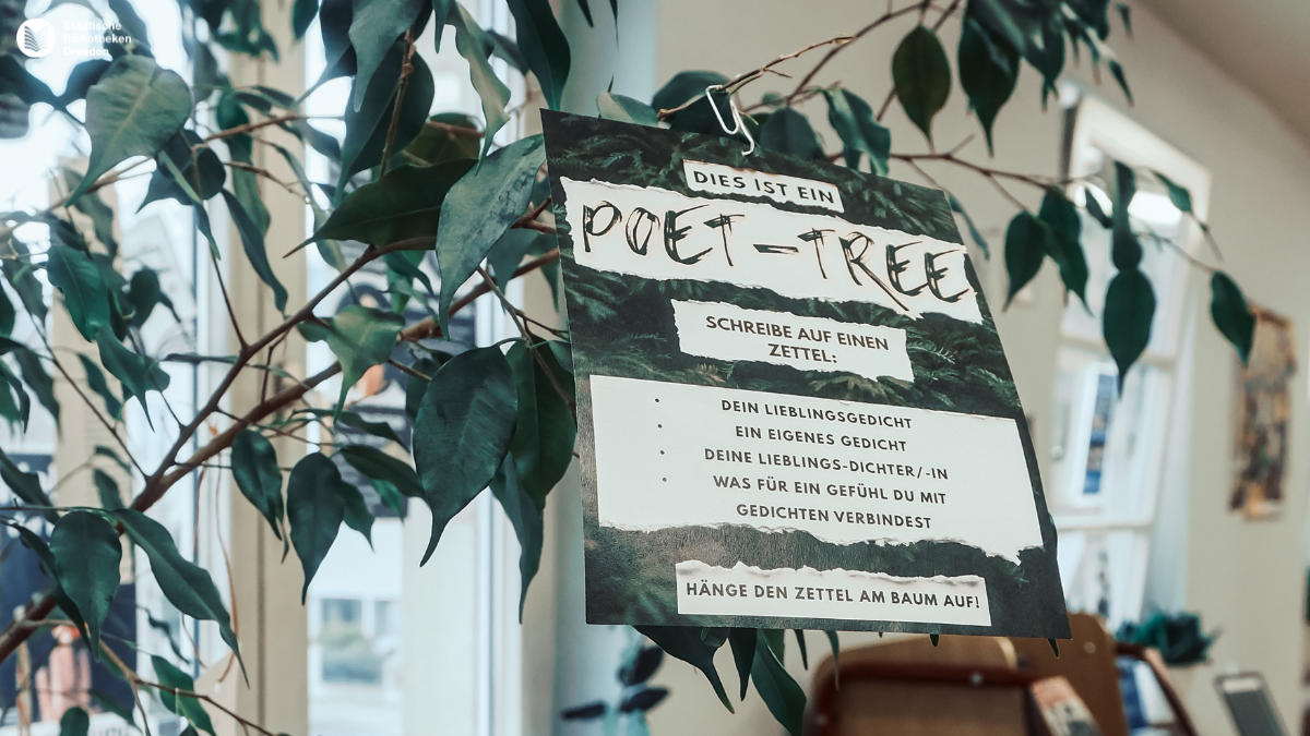Seit Anfang Februar können Sie auch selbst geschriebene Gedichte direkt vor Ort in beiden Bibliotheken einreichen oder Sie übermitteln diese über E-Mail. Ausgewählte Texte werden ausgestellt und auf den Social-Media-Kanälen der Städtischen Bibliotheken Dresden veröffentlicht.