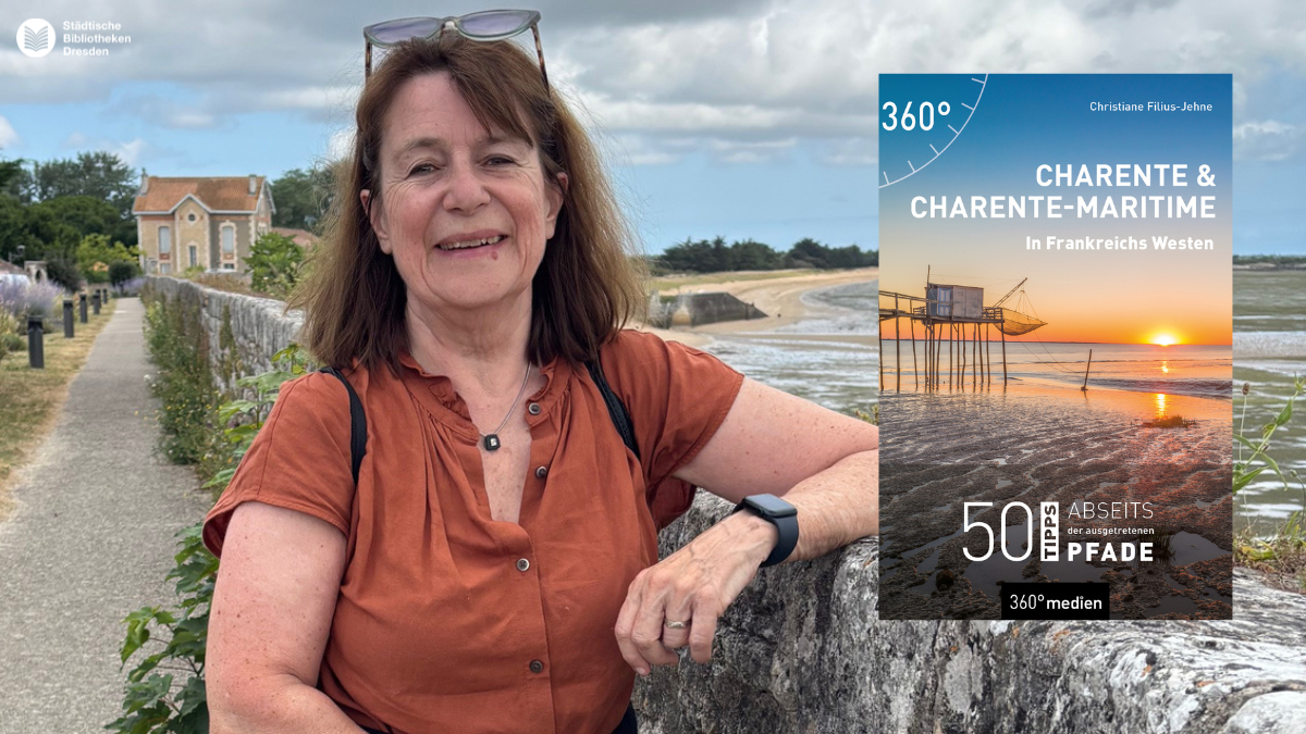 Die Bibliothek Dresden Blasewitz lädt zu einer Entdeckungsreise an die französische Atlantikküste ein. Die Dresdnerin Christiane Filius-Jehne stellt ihr Buch "Charente & Charente-Maritime – In Frankreichs Westen" vor und nimmt das Publikum mit in eine der vielfältigsten Regionen Frankreichs.