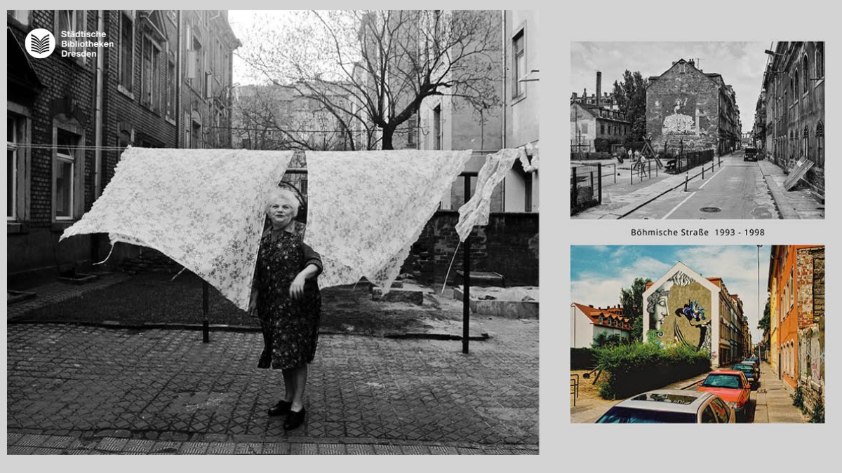 Christine und Günter Starke gehören wohl zu den wichtigsten Bildchronisten der vergangenen fünfzig Jahre. Ihre Bilder der Dresdner Neustadt zeugen vom Auf und Ab, vom Werden, Vergehen und Wiedererstehen eines starken VIERTELs.