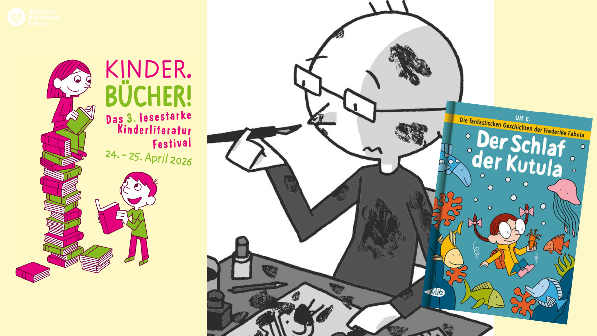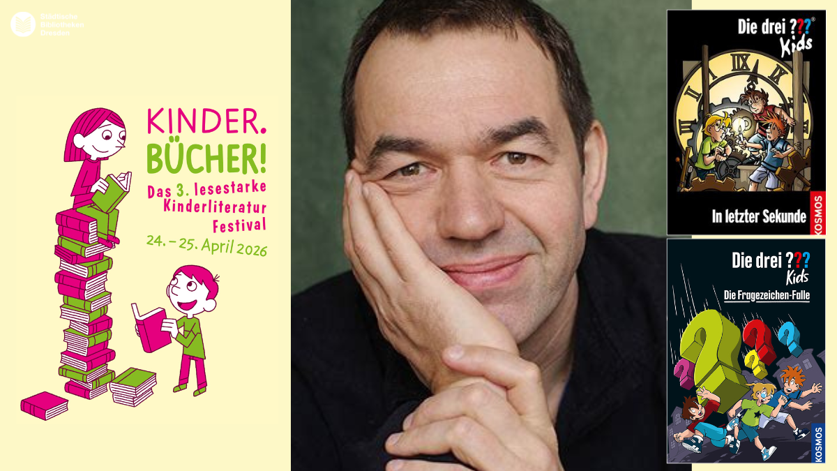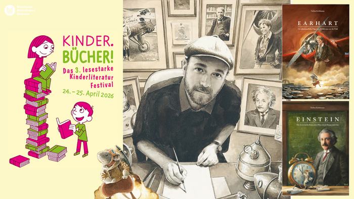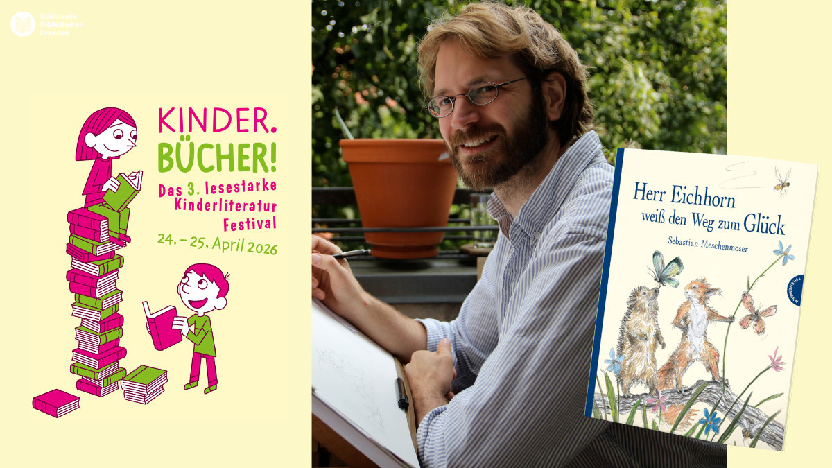 wenn die Drei ??? Kids auf Herrn Eichhorn treffen, ihr mit einer kleinen Wühlmaus einen abenteuerlichen Flug um die Welt unternehmen könnt und die ganze Familie zu einer Comic-Lesung zusammenkommt, dann heißt es endlich wieder: Das lesestarke Kinderliteraturfestival der Städtischen Bibliotheken Dresden lädt euch vom 24. bis 25. April 2026 ein, die KINDER.BÜCHER zu feiern.